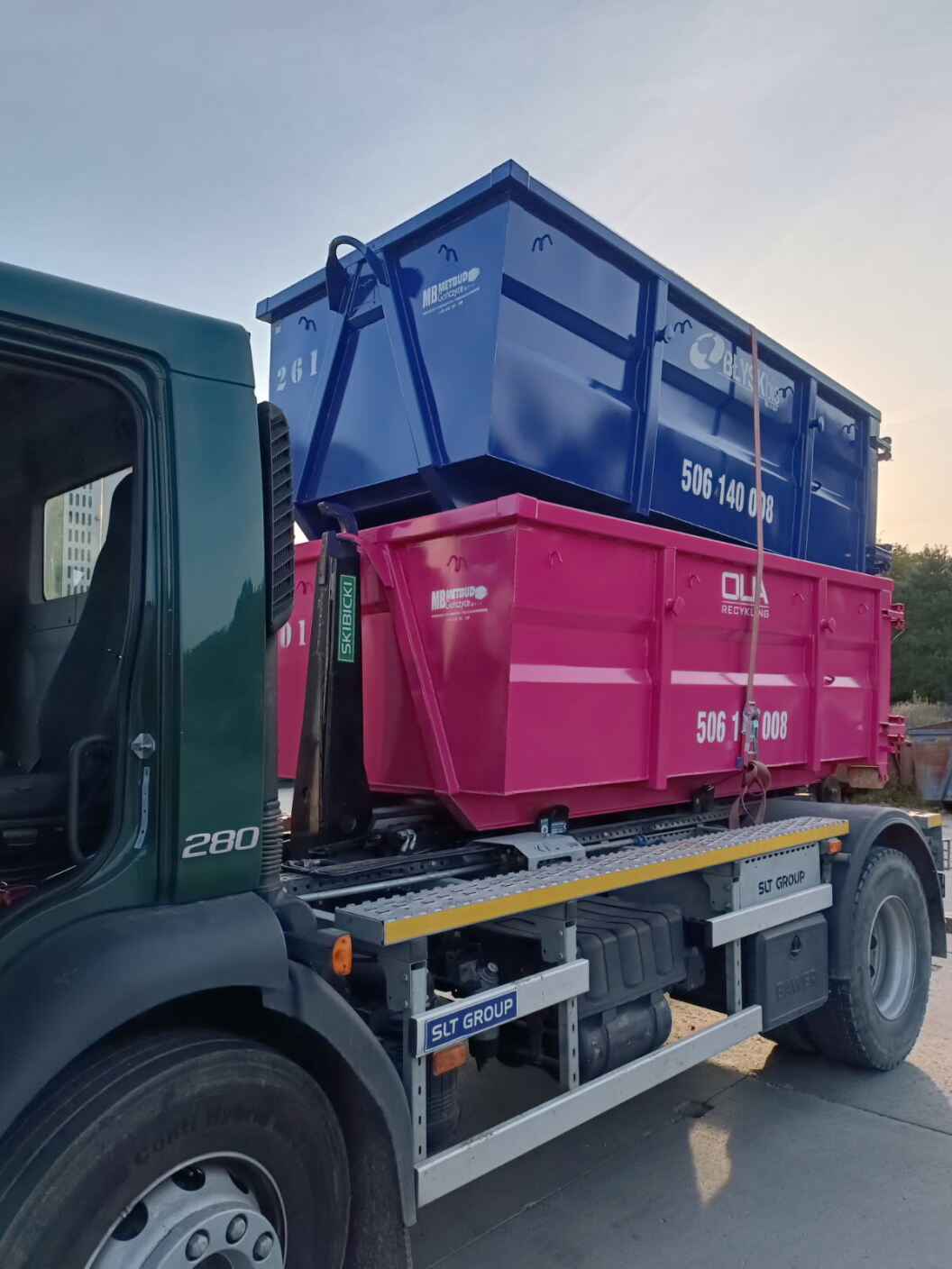 - Jedna grupa – pełen łańcuch: kontener → transport → legalne zagospodarowanie.